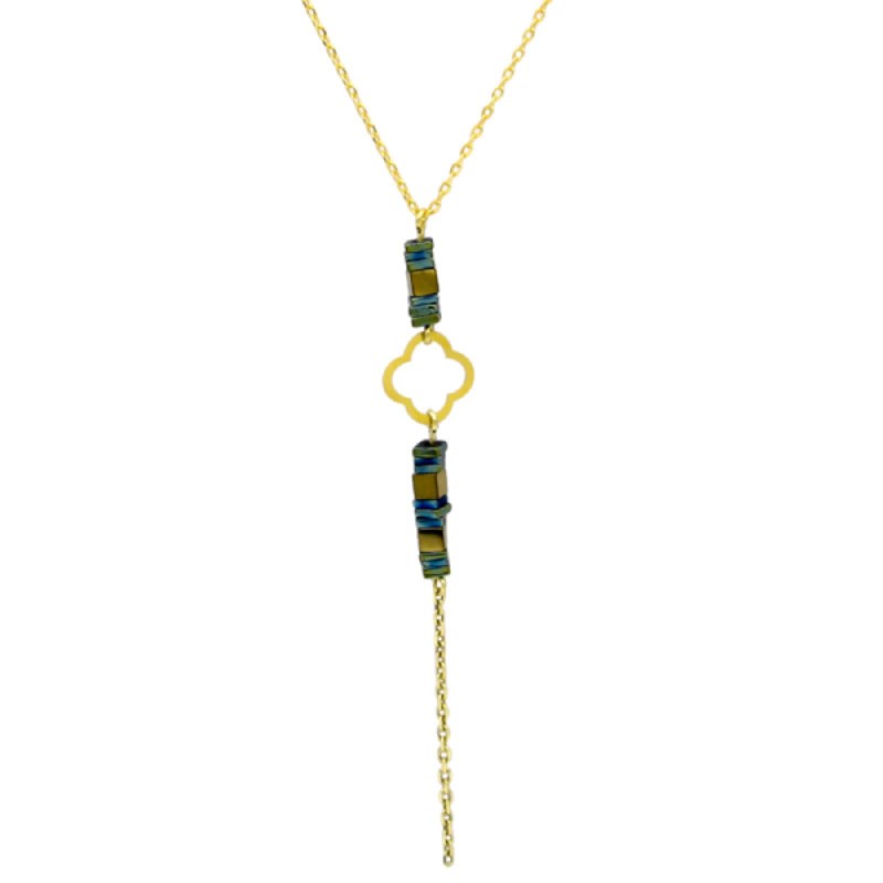 • توضیحات زنجیر : ساخته شده از : یک گوی طلا ۱۸ عیار توری گرد مهره های طبیعی صدف
